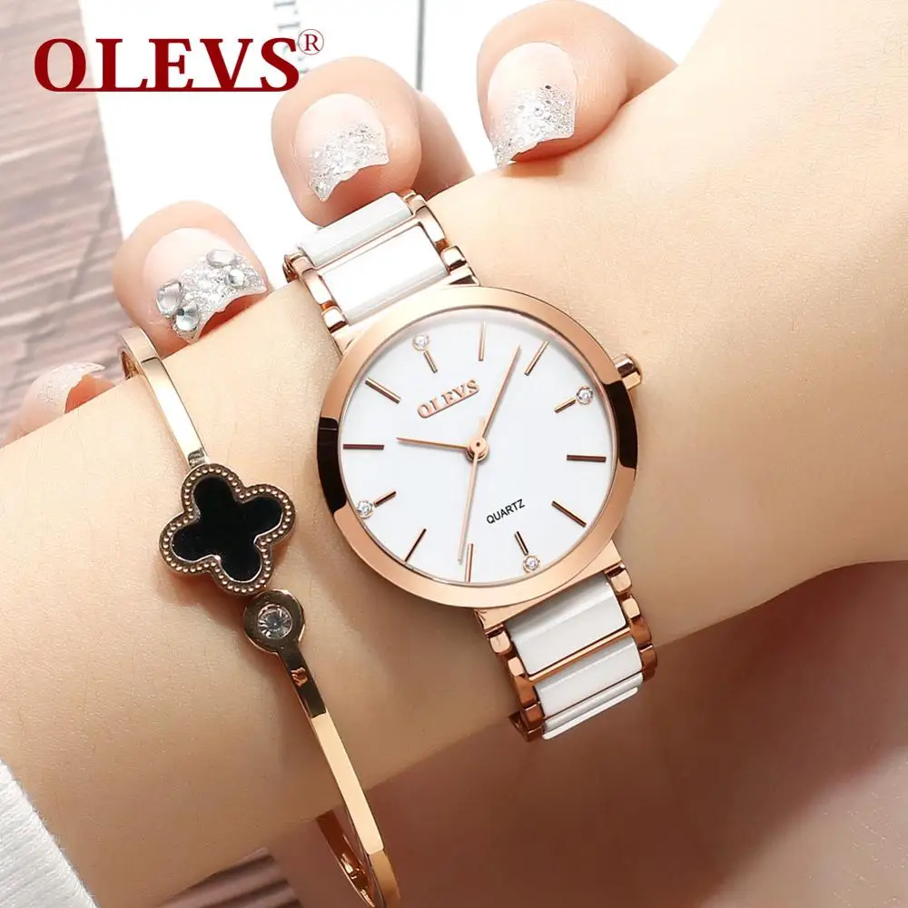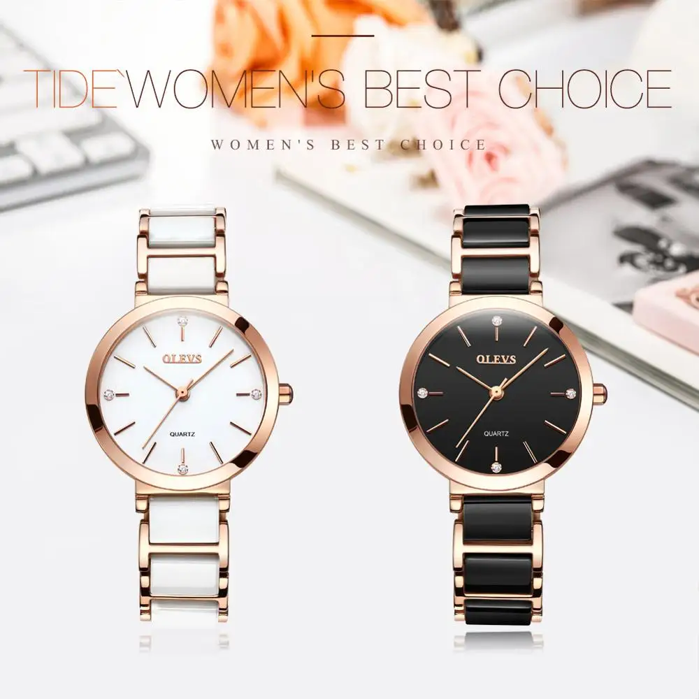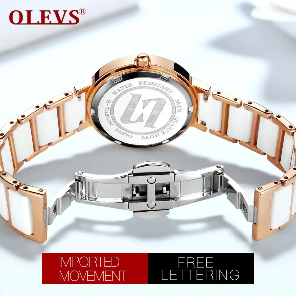 BEST QUALITY OLEVS luxury ceramic strap roman numeral dial ladies watch high quality waterproof rose gold stainl