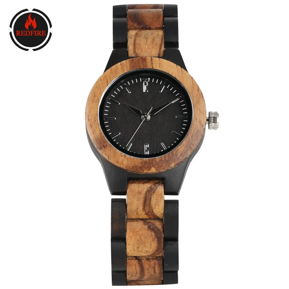 HIGH QUALITY REDFIRE Pure Ebony Wood Ladies Bangle Watch Quartz Movement Elegant Women's Natural Wooden Clock Vi