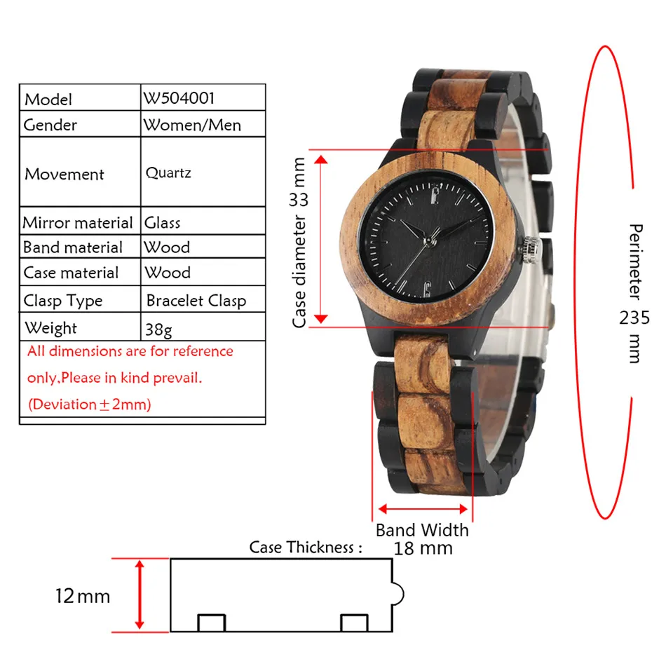 REDFIRE Pure Ebony Wood Ladies Bangle Watch Quartz Movement Elegant Women's Natural Wooden Clock Vi