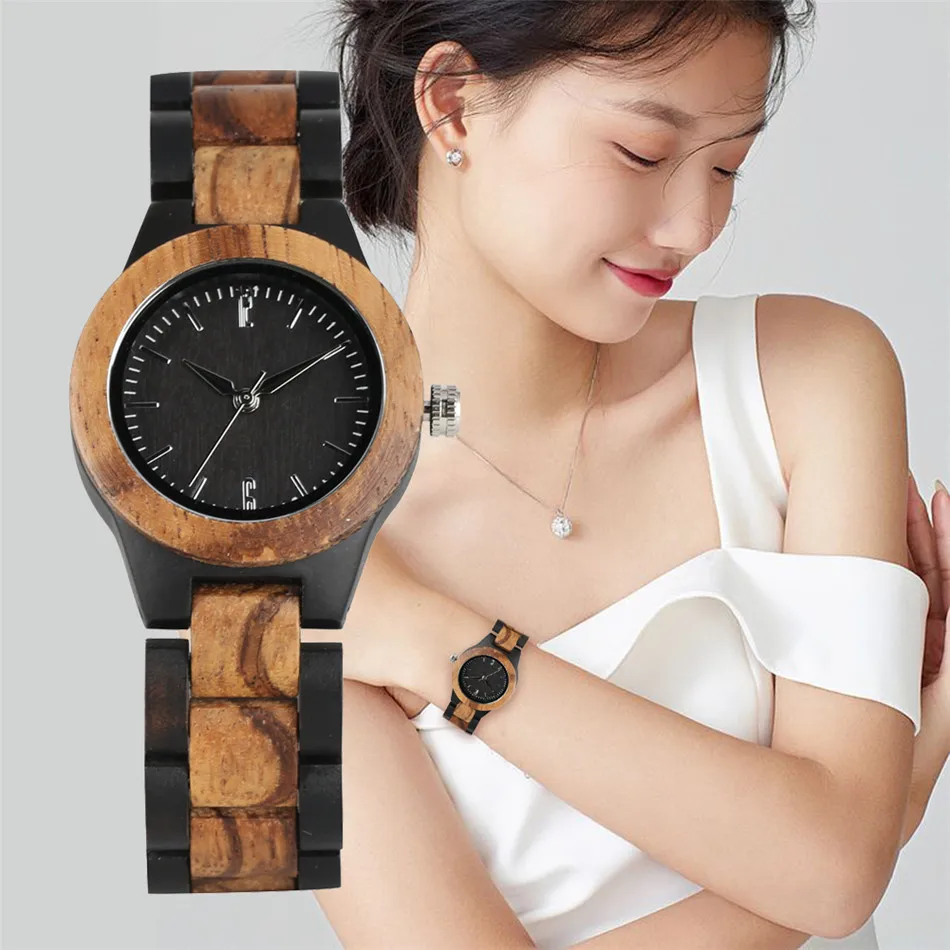 Best Seller REDFIRE Pure Ebony Wood Ladies Bangle Watch Quartz Movement Elegant Women's Natural Wooden Clock Vi
