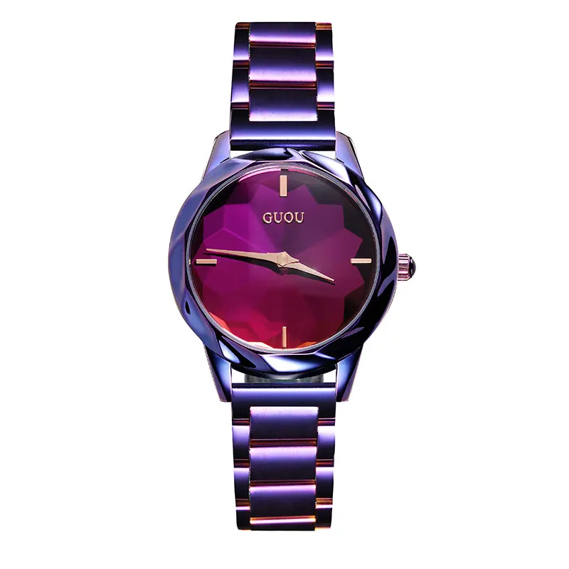 2019 Fashion Guou Top Brand Luwatch Reloj Mujer Rose Colors Purple $ Black Stainless Steel Quality