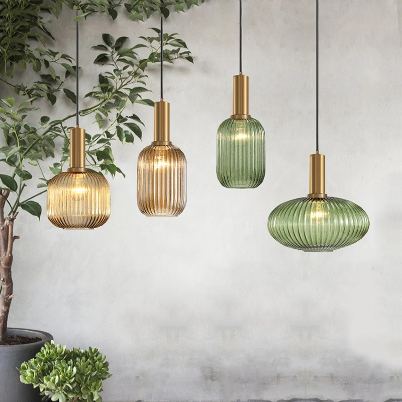 Color Pendant Lights Glass Hanging Lamp Green Gray Shade Kitchen Dining Room Bar Nordic Led Pendant