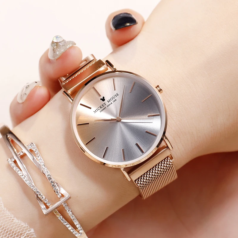 Disney watch female student high school angry quality waterproof simple retro lazy magnet strap lad