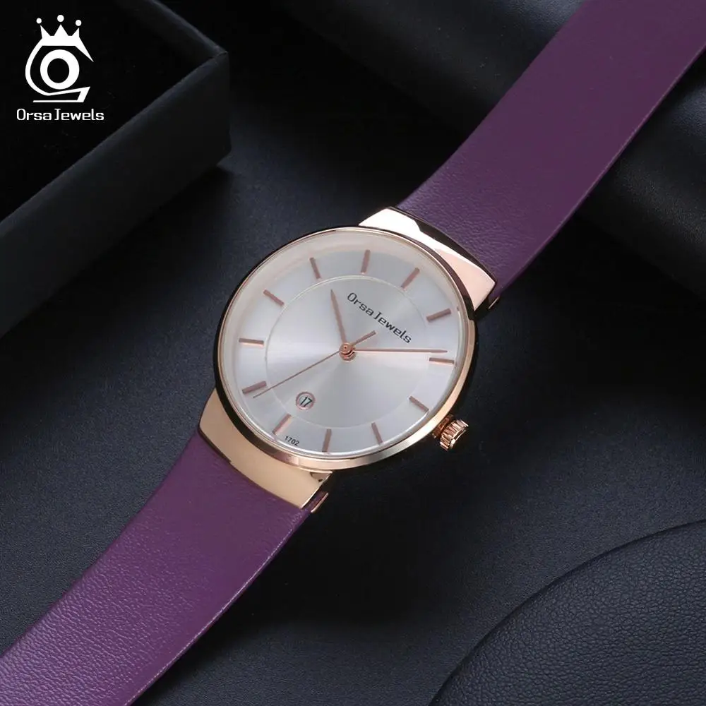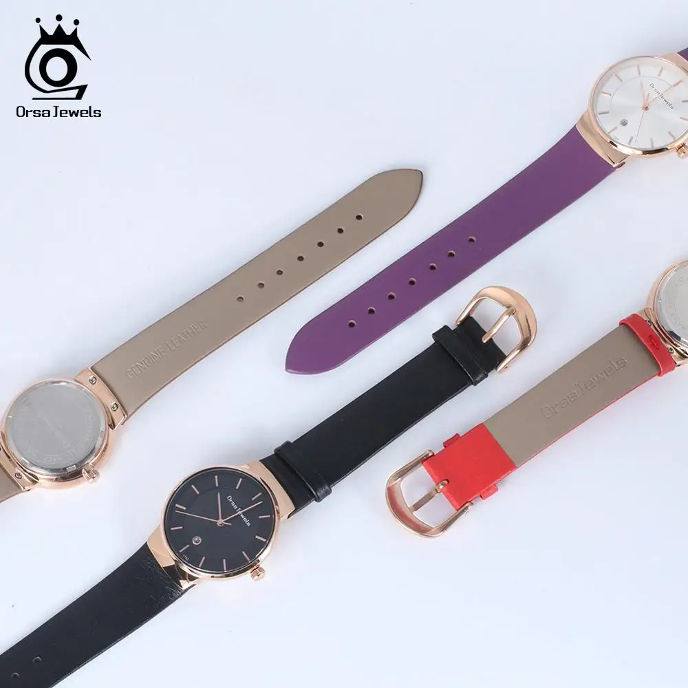 Review ORSA JEWELS Fashion Ladies Watches Black Leather Simple Quartz Wrist Watch Top Quality Women Watchb