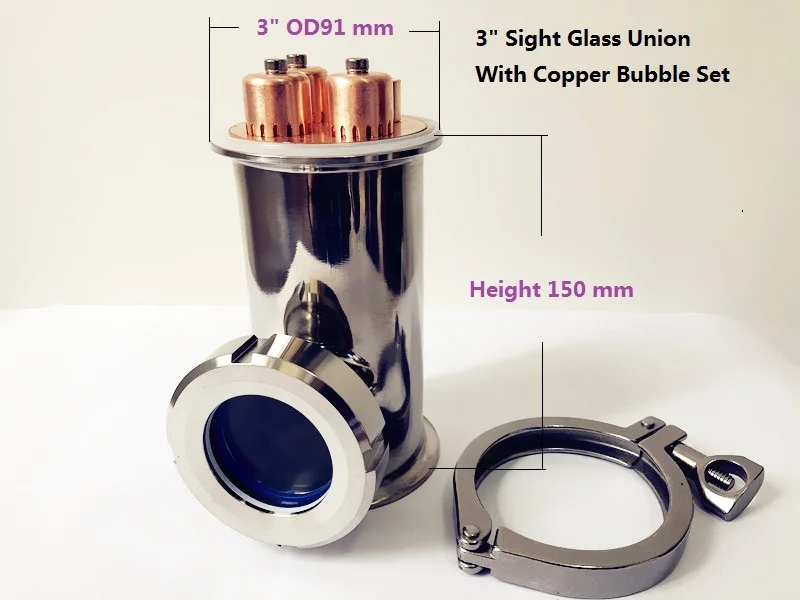 FreeShip 3" Sight Glass Union Tri-Clamp Tee With Copper Bubble Set Distillation Lens Column For Hom