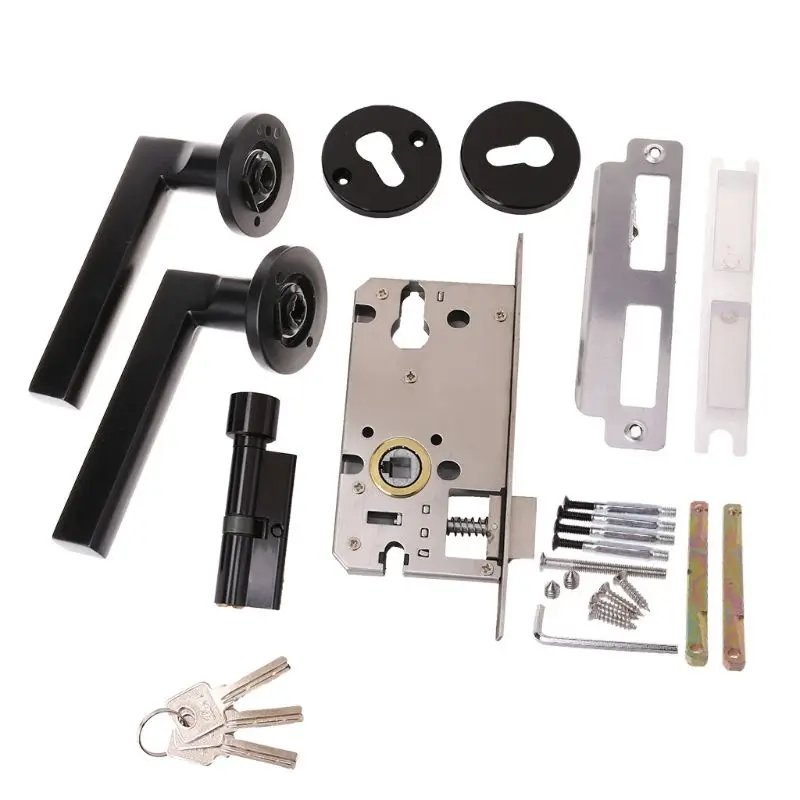 Best Quality Black space aluminum door handle Interior / Bedroom door lock Split Silent door lock Door hardware