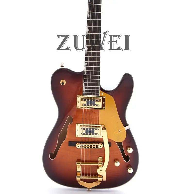 HIGH QUALITY F Hole Semi Hollow Body TL Electric Guitar Bigsby Bridge Gold Hardware Set In Joint